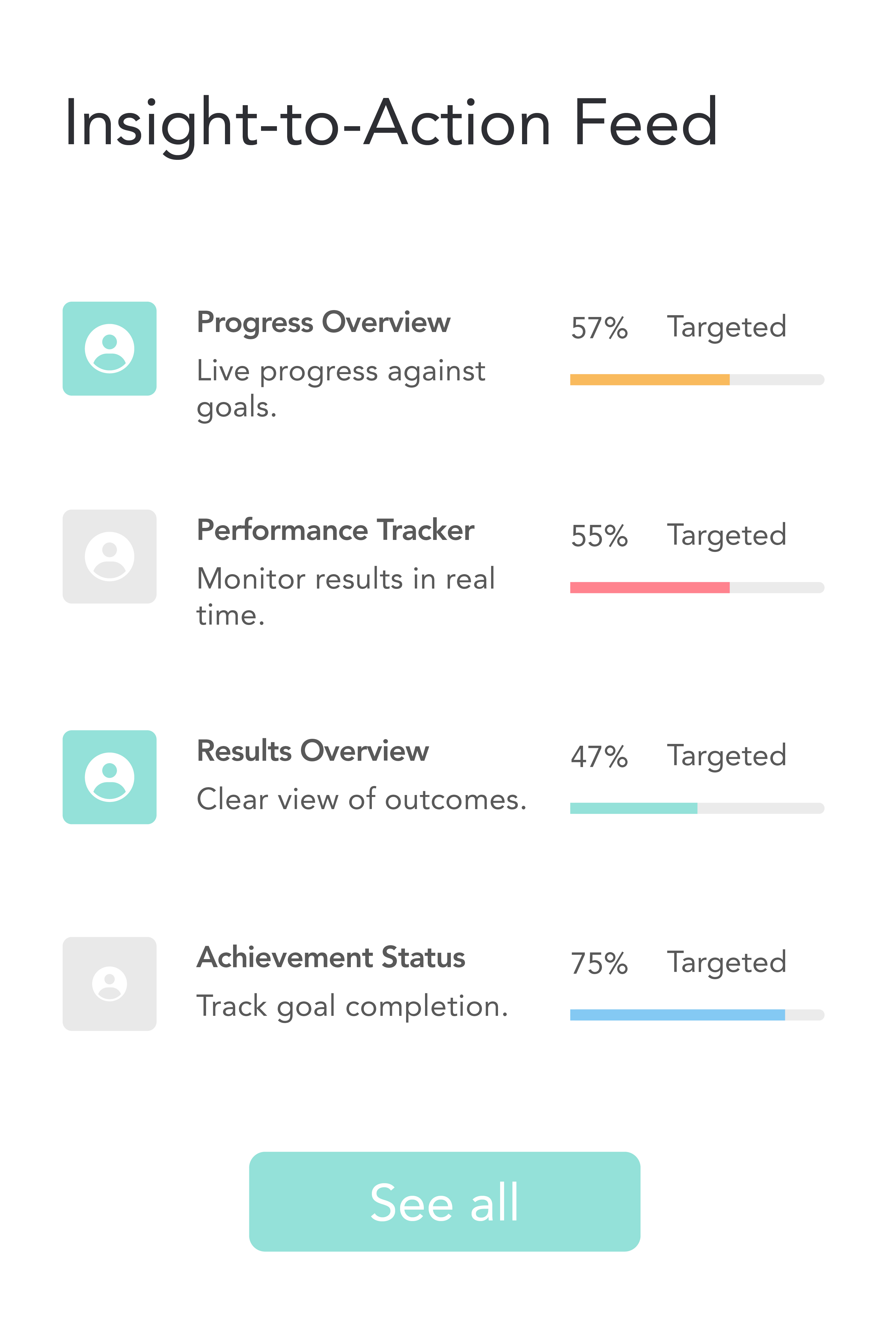 The Suggestion Feed gives leaders and managers continuous, AI-generated guidance rooted in real execution signals -- not generic AI outputs. It spots weak signals, identifies early risks, and surfaces the next best actions to keep work moving predictably.